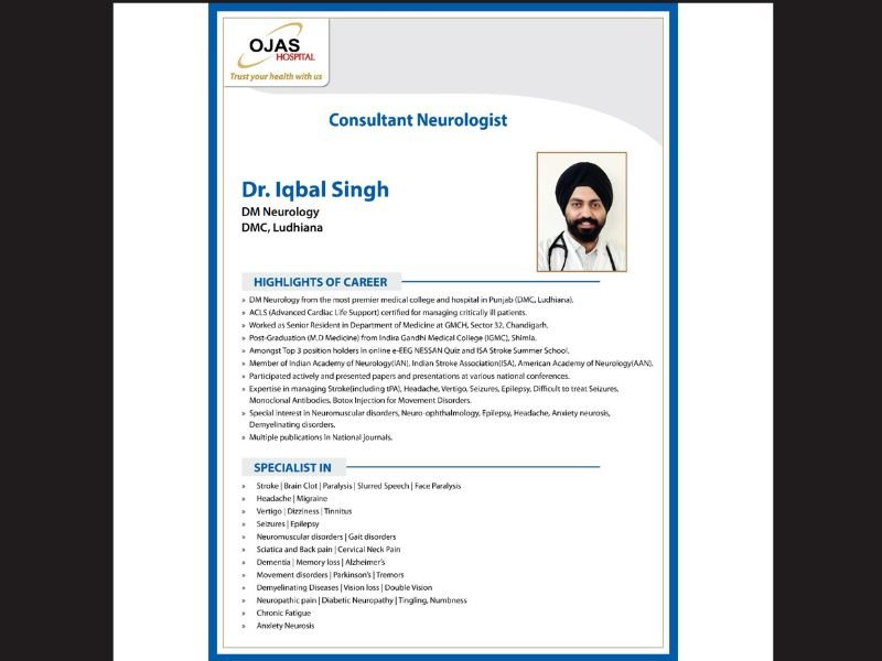 Dr. Iqbal Singh (MBBS, MD, DM) is a highly experienced neurologist with years of expertise in diagnosing and managing complex neurological disorders.